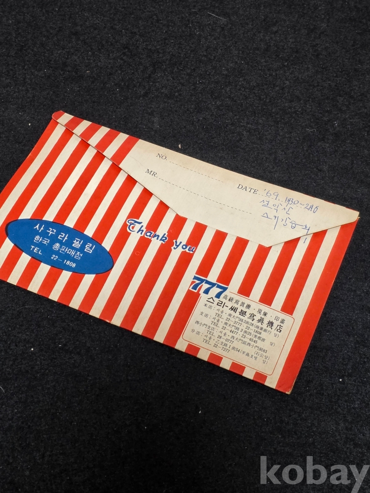 (((근현대사자료)) 1960년대 스리 쎄븐 寫眞機店 봉투와 스키강습 흑백필름 10여점