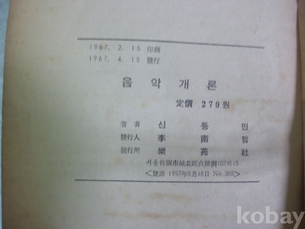 음악개론 (1967년, 신동민 저, 악원사)