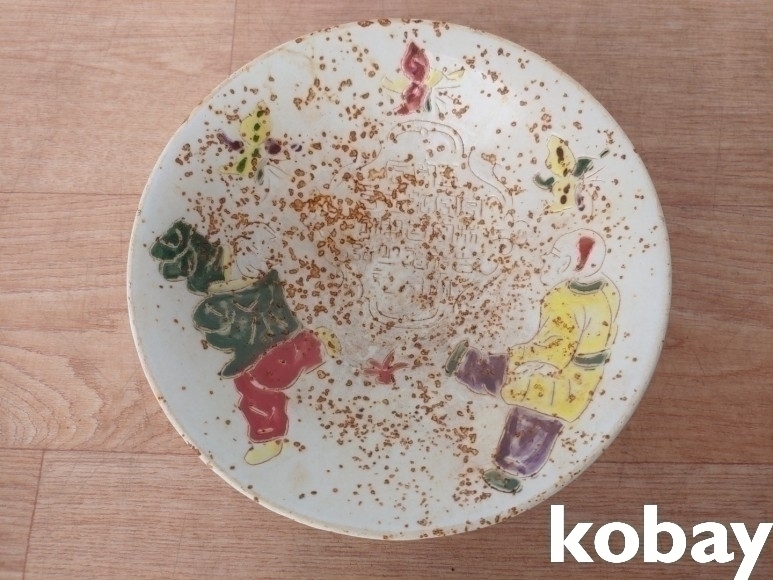 동자 그림이 음각으로 있는 다완 도자기 입니다.