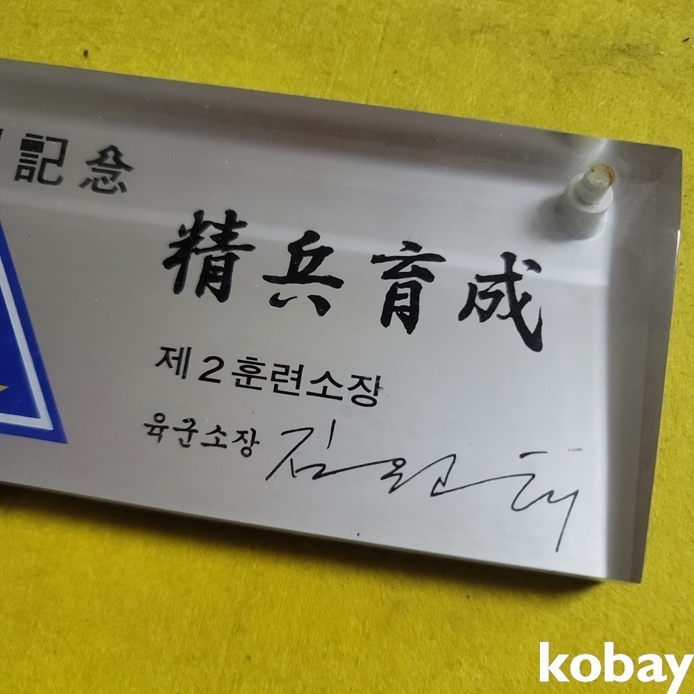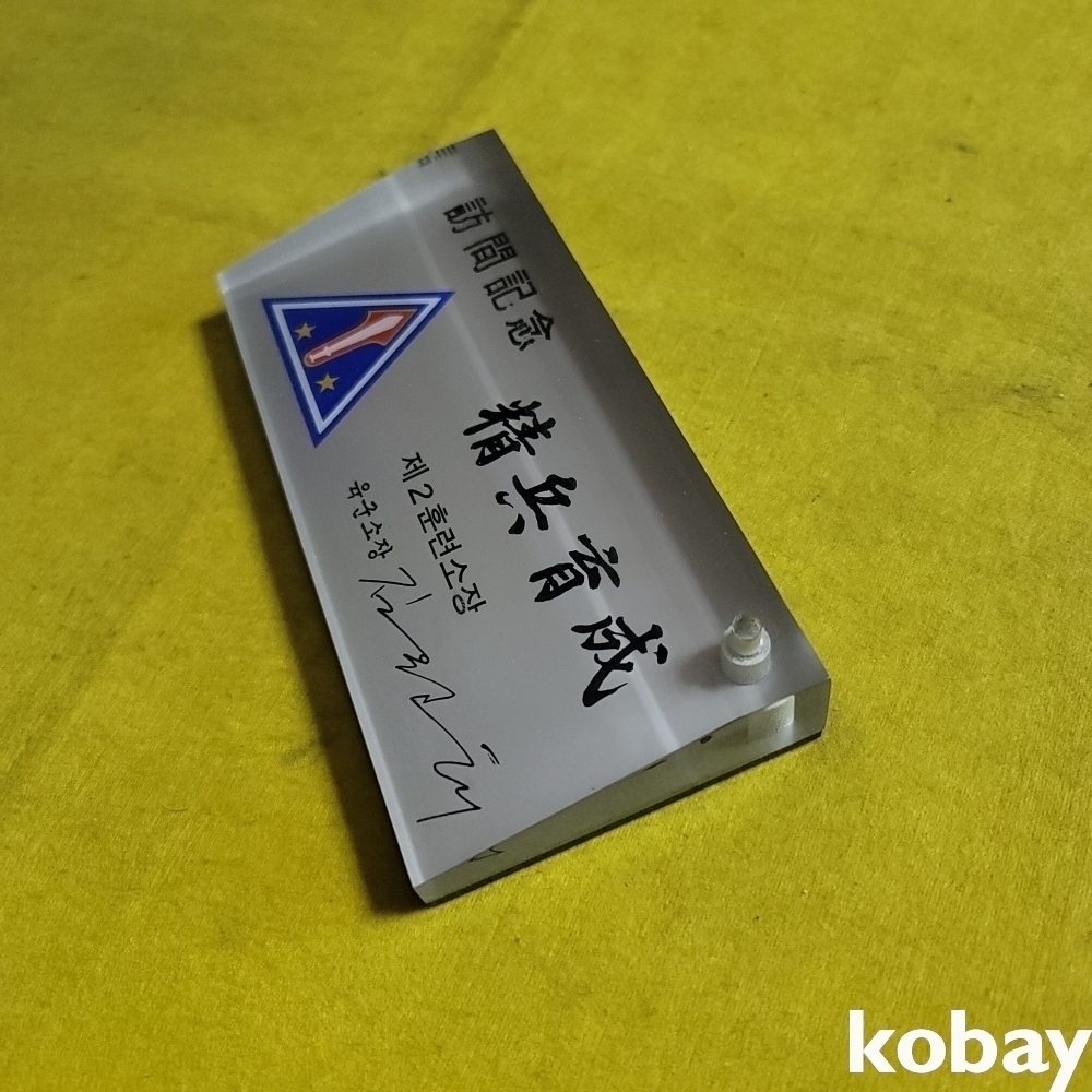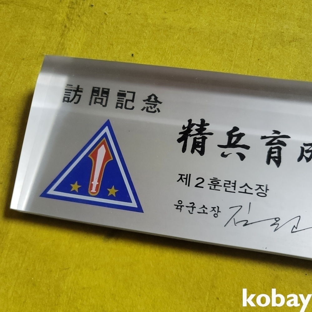 (((군자료))) 오래전 精兵育成 제2훈련소 방문기념 육군소장 김원태 증 펜꼿이 문진