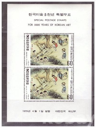 (한국시트) 1979.4.1 한국미술 5천년-신윤복의 단오절 sheet of 2 MNH