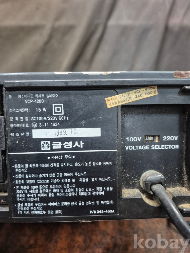 1989년 금성사 비디오 카세트 플레이어 모델 VCP-4200 전원 안들어옴 근대사 자료 29*32*10