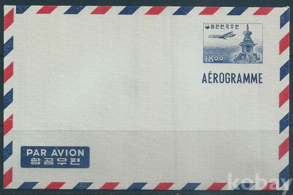 (한국항공서간)1962년18원다보탑항공서간(미사용제)-MNH, VF