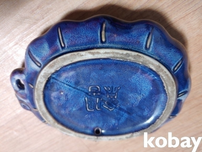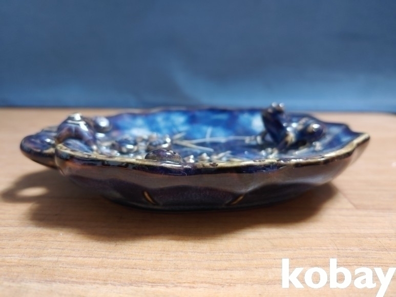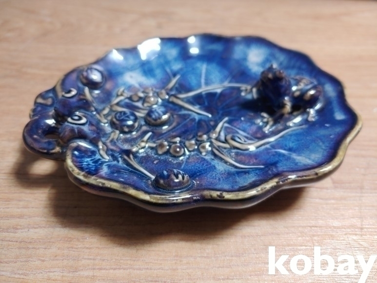 개구리와 나뭇잎 모양의 필새 도자기 입니다.