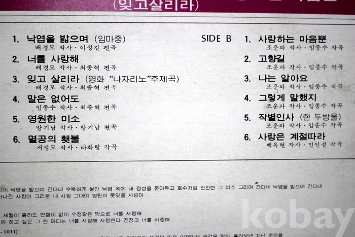 수록 곡 목은 사진을 참조하시기 바랍니다