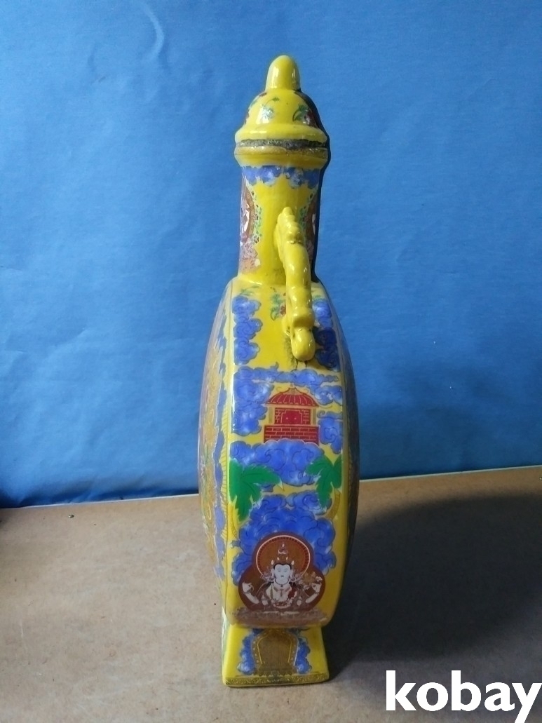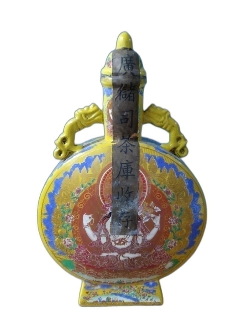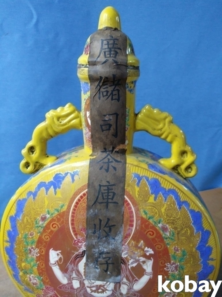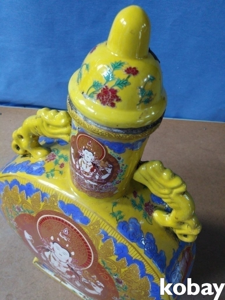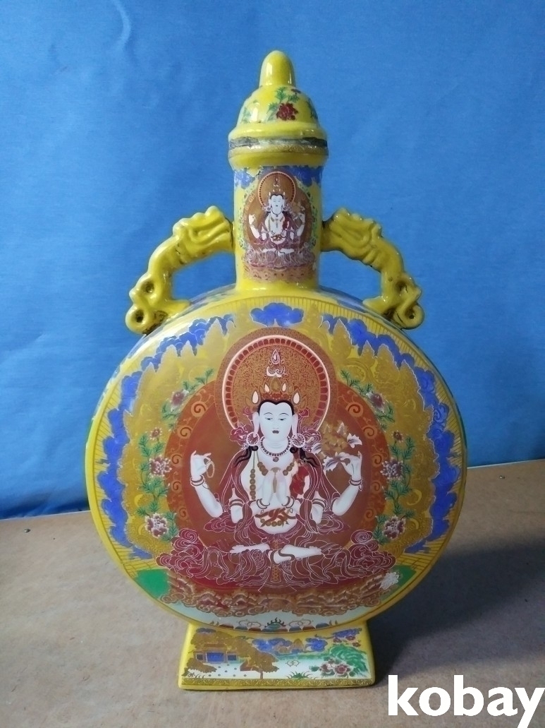 부처님 형상이 있는 둥근 편병 보이차 도자기 입니다.