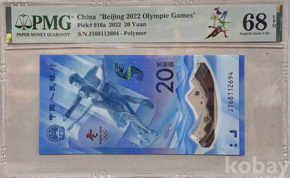 -2022년 중국 동계올림픽 기념 지폐 PMG68 고등급 입니다.