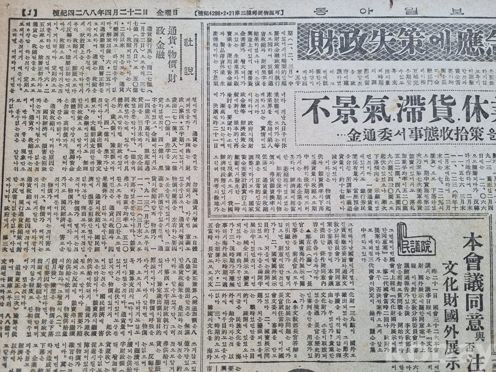 경제 위기 보도: "재정실책(財政失策)에 응급책 시급", "불경기(不景氣) 체화(滯貨) 휴업(休業) 확대" -
