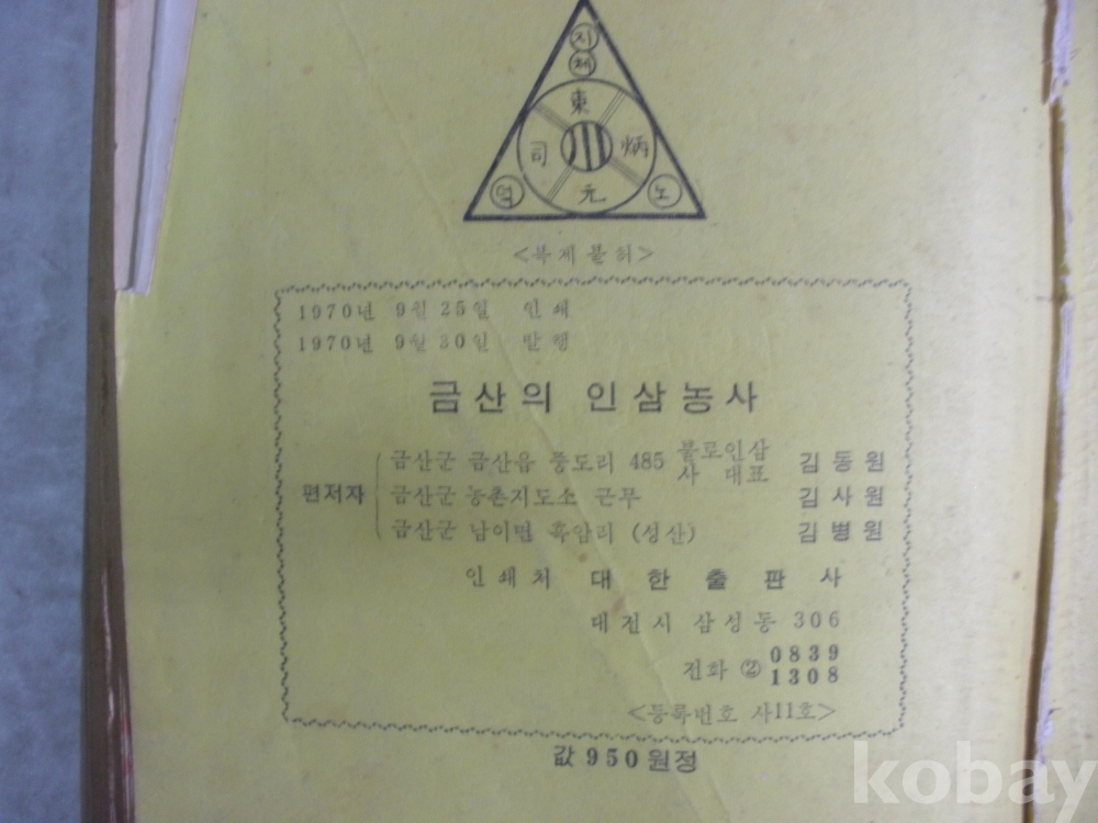 금산의 인삼농사 - 새로운 인삼 재배법 (이론과 실제, 1970년, 대한출판)
