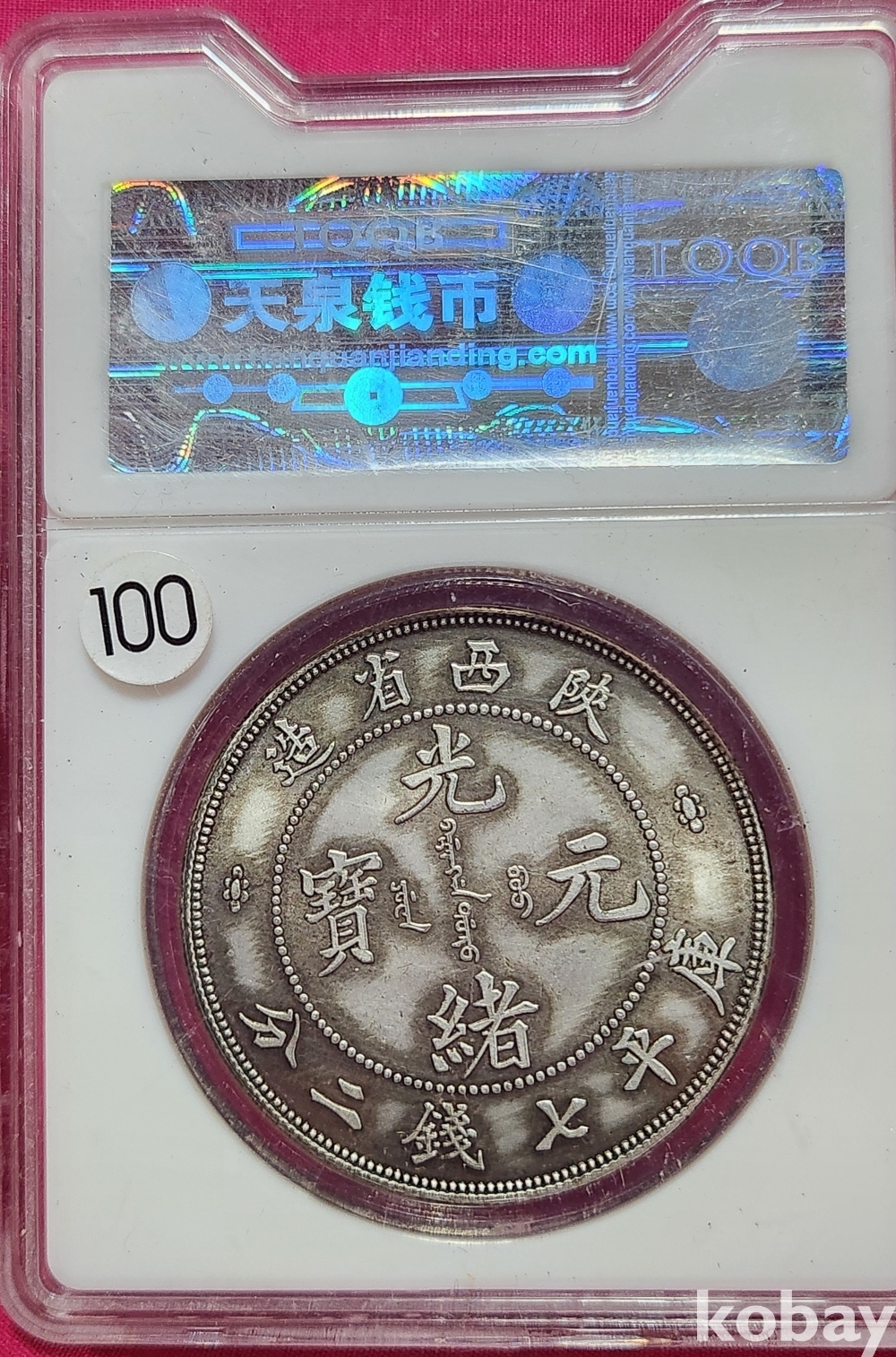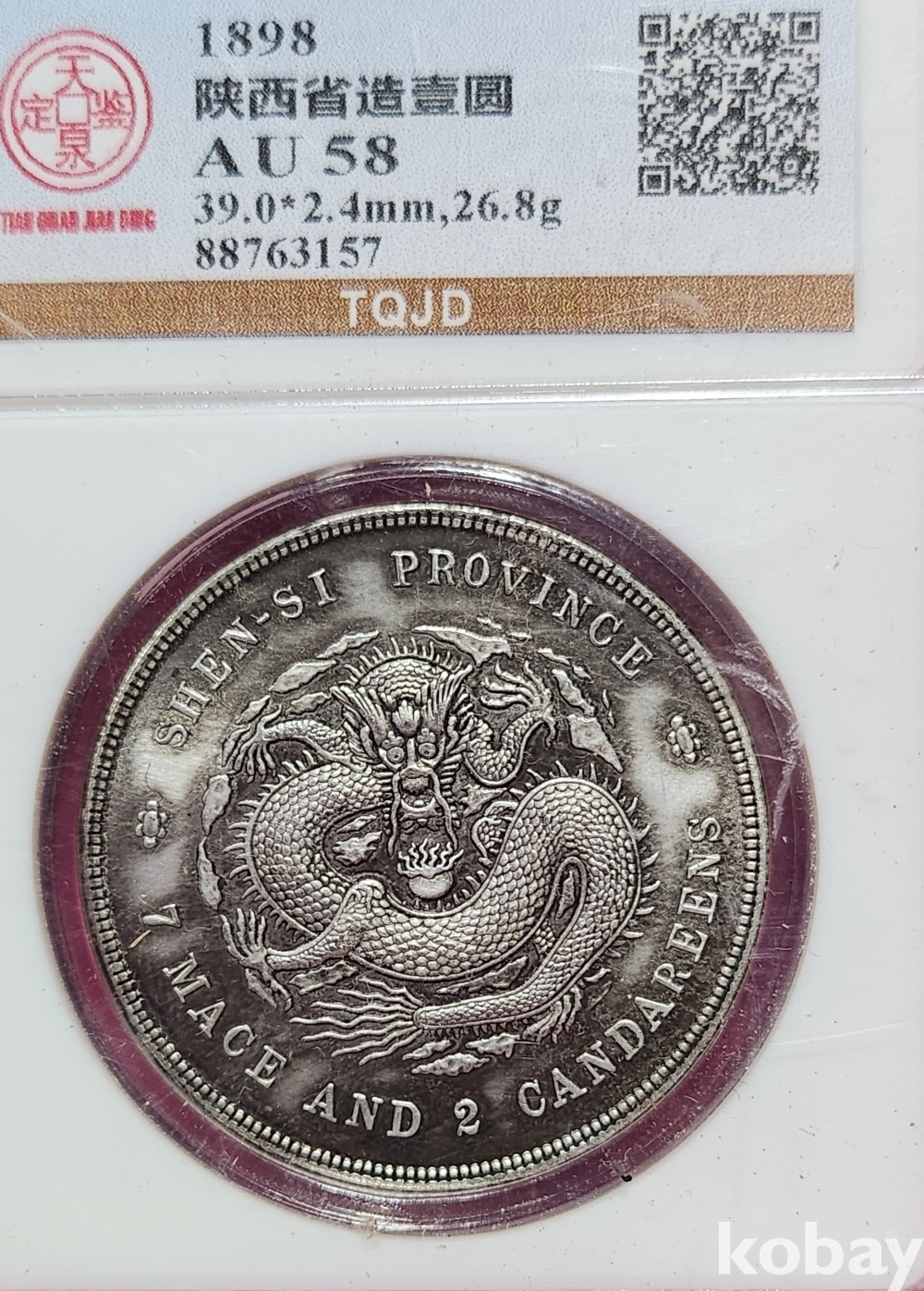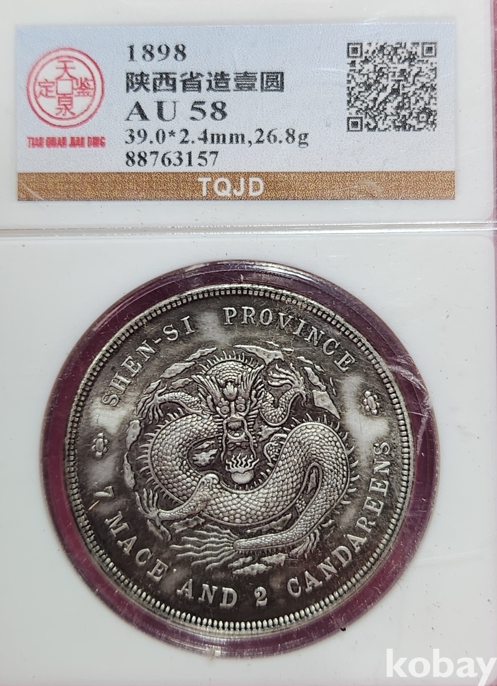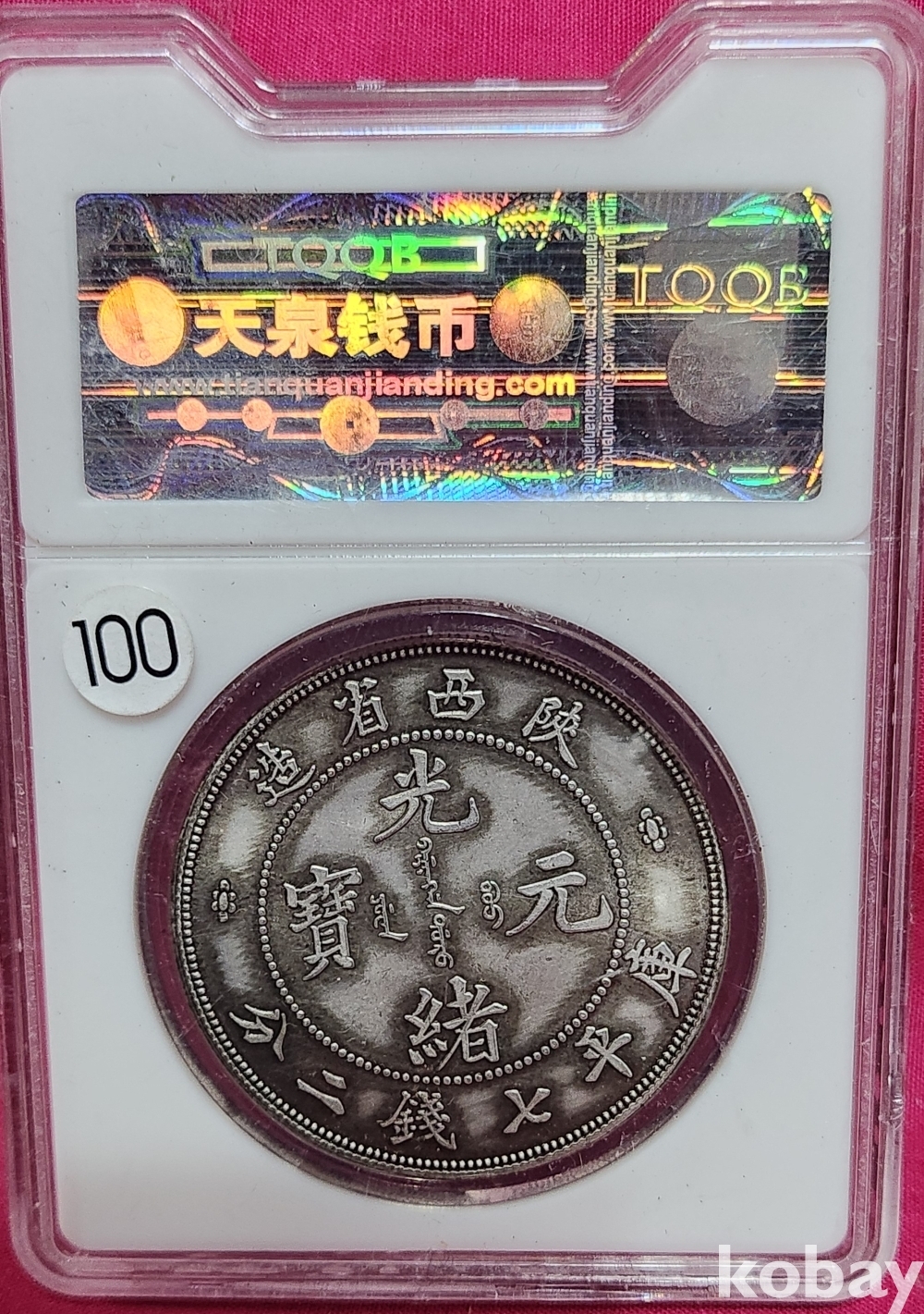 1898년 큐알코드(QR CODE)가 함께하는 은색 광서원보 (光緖元寶) 화패로 밀봉된 상태입니다,