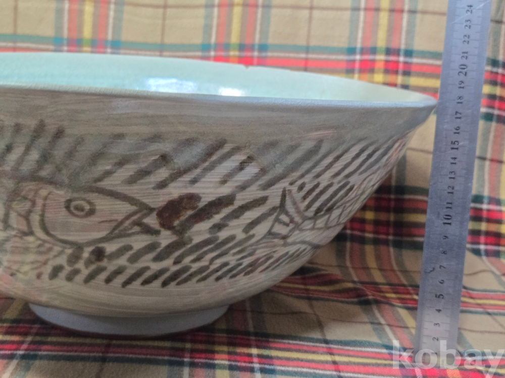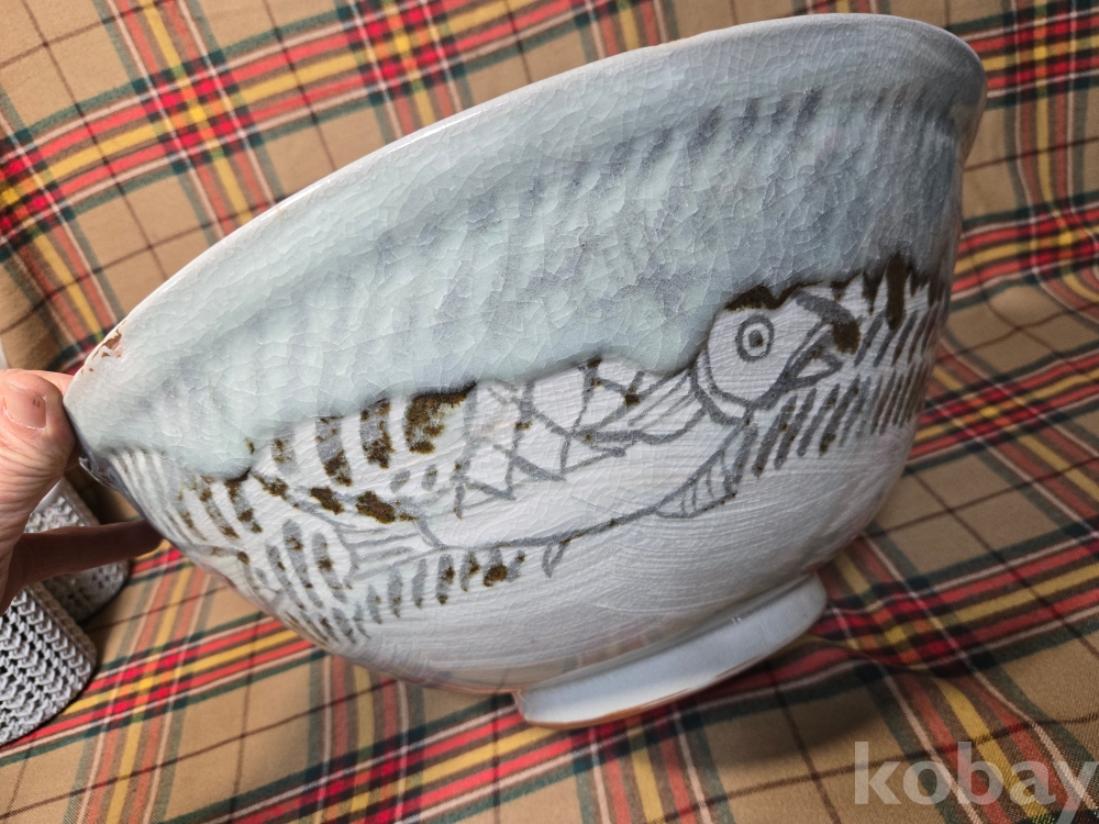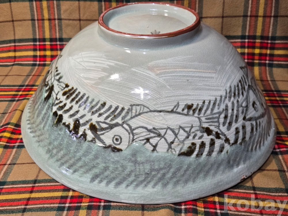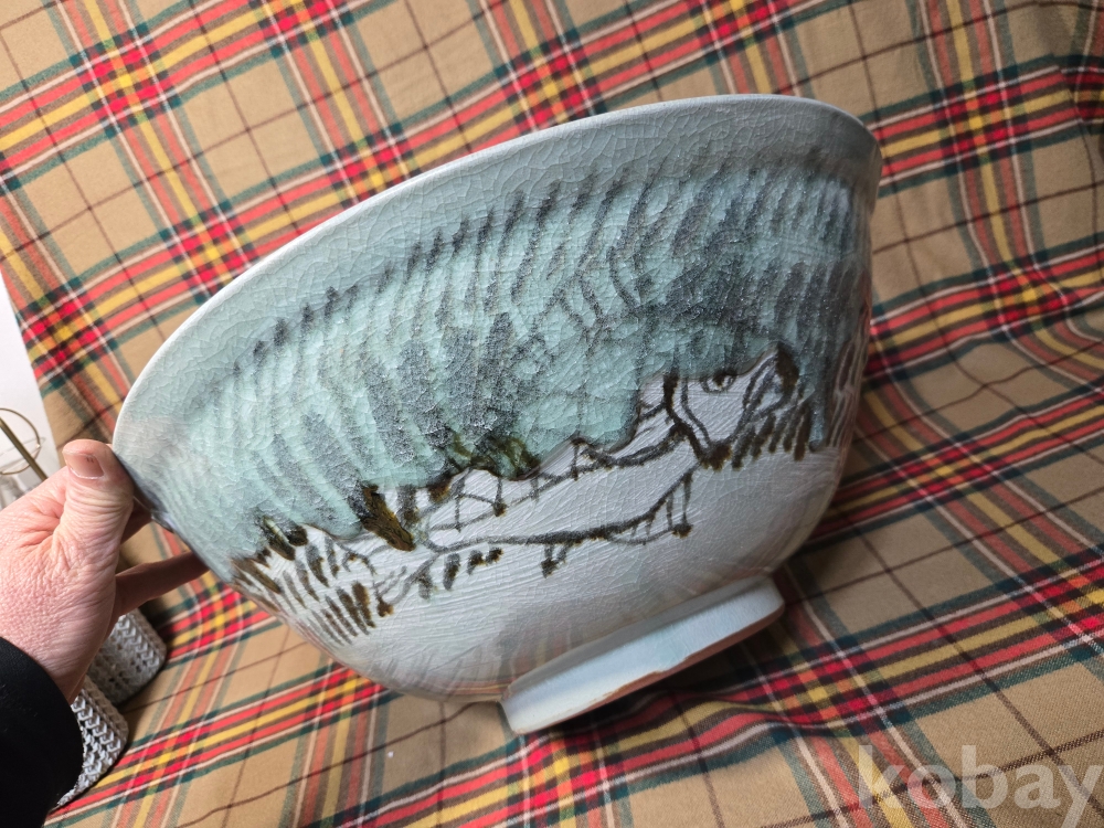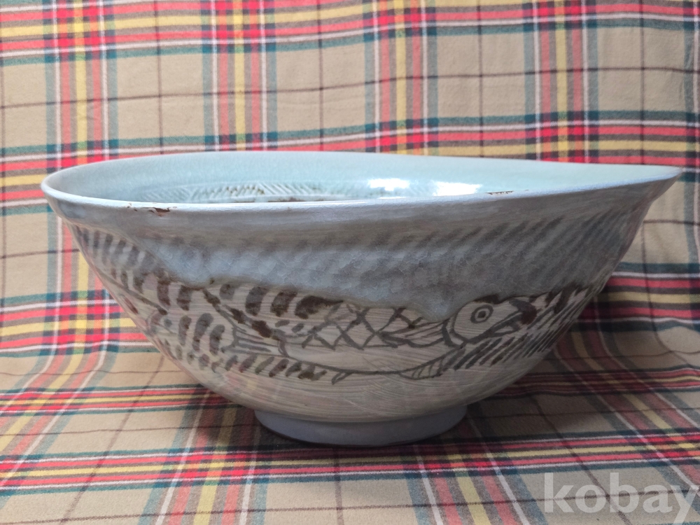 한국 현대도예의 상징과도같은 도예의 신, 장여 신정희 선생의 70년대작품으로 추정하는 초대형 청자흑백상감 철화 어문수반입니다.