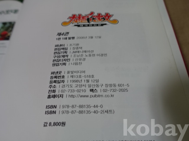 2R785)2008년 풀빛미디어 발행-KBS방영 애니메이션[태극천자문 4권-협동심의 위력]