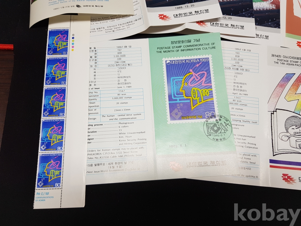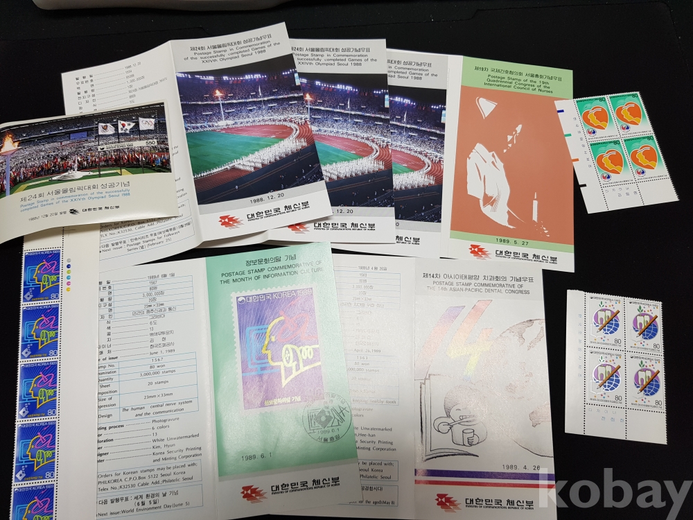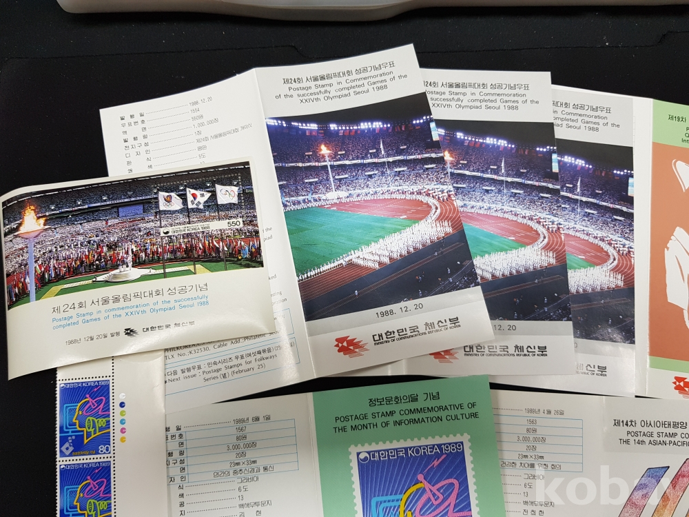 - 1988년 기념우표 시트, 명판, 안내카드 등 모음