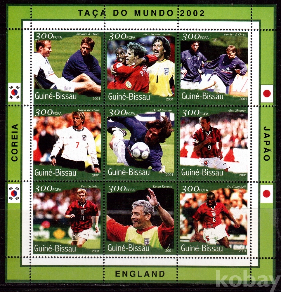 (월드컵) Guinea Bissau (기니비사우) 2002 한.일월드컵축구대회 sheet of 9 (England) MNH