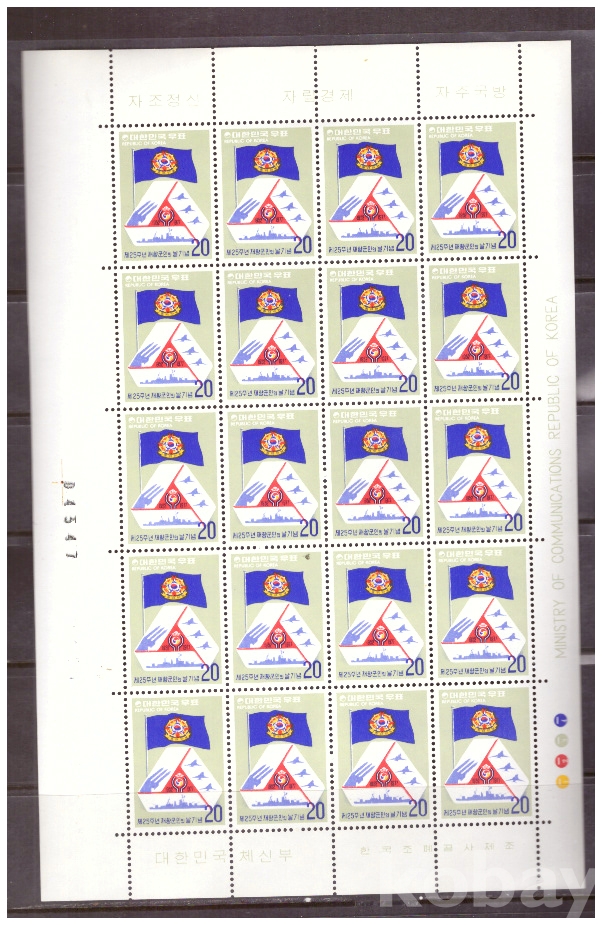 (한국전지) 1977.5.8 제25주년 재향군인의 날 sheet of 20 MNH