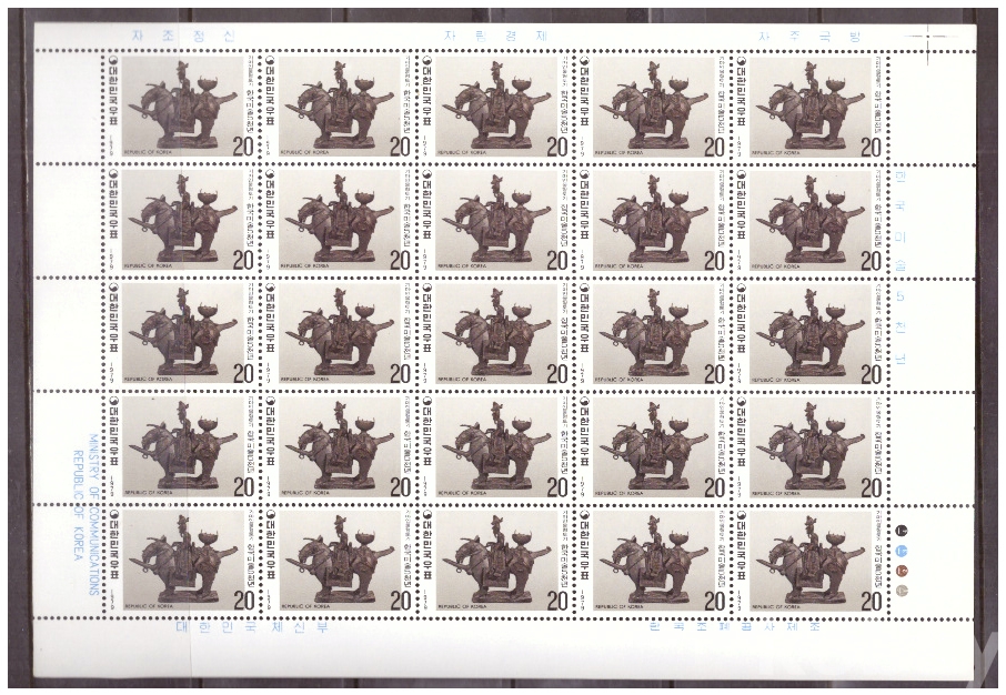 (한국전지) 1979.10.15 한국미술 5천년-기마인물형토기 sheet of 25 MNH
