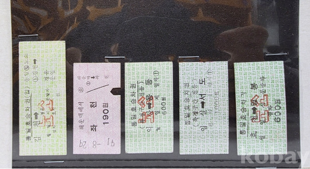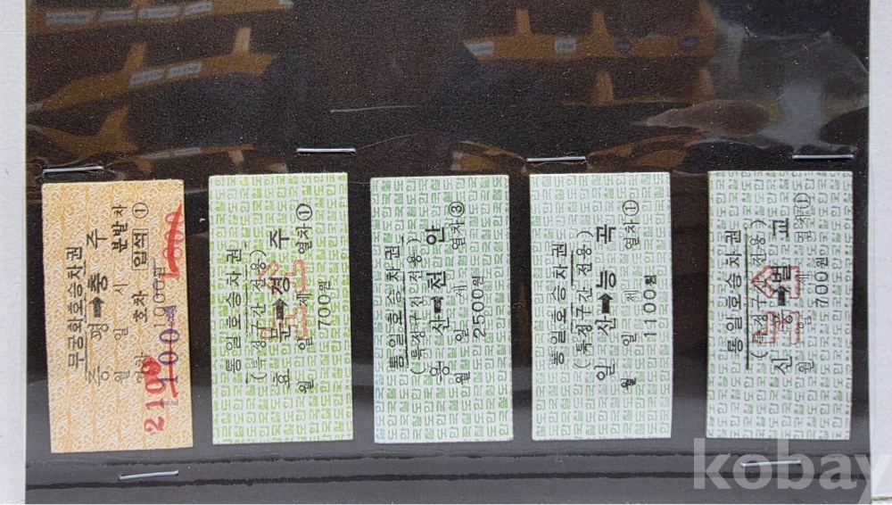 -기차, 지하철, 버스표등 다양합니다.