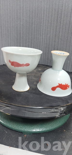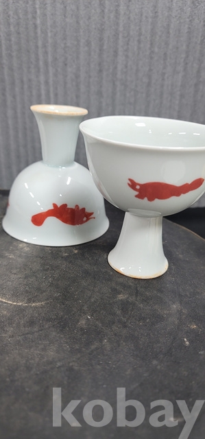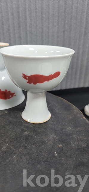 b-104.대청선덕년제 물고기문 백자 마상배 한쌍