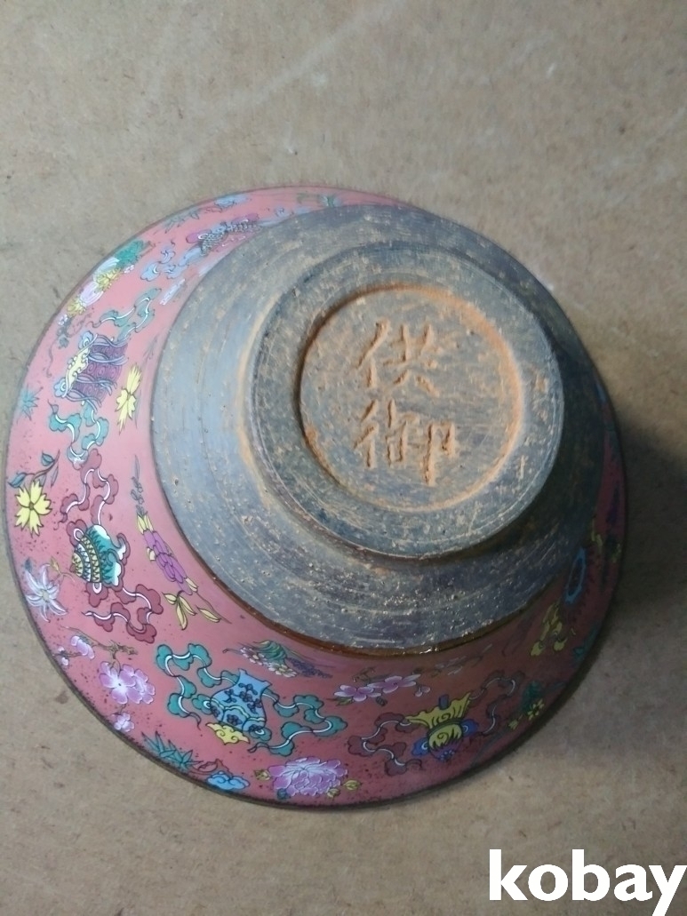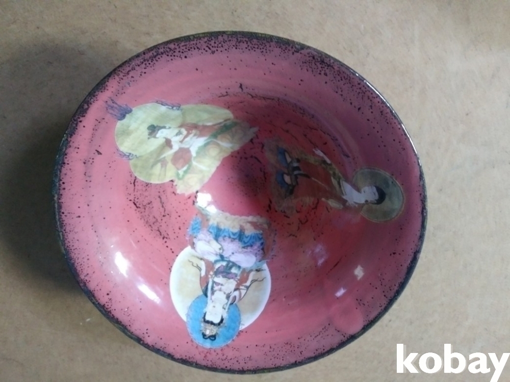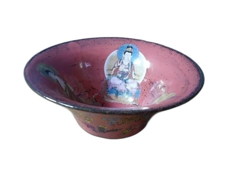 부처님 도안과, 꽃 문양이 있는 대형 다완 입니다.