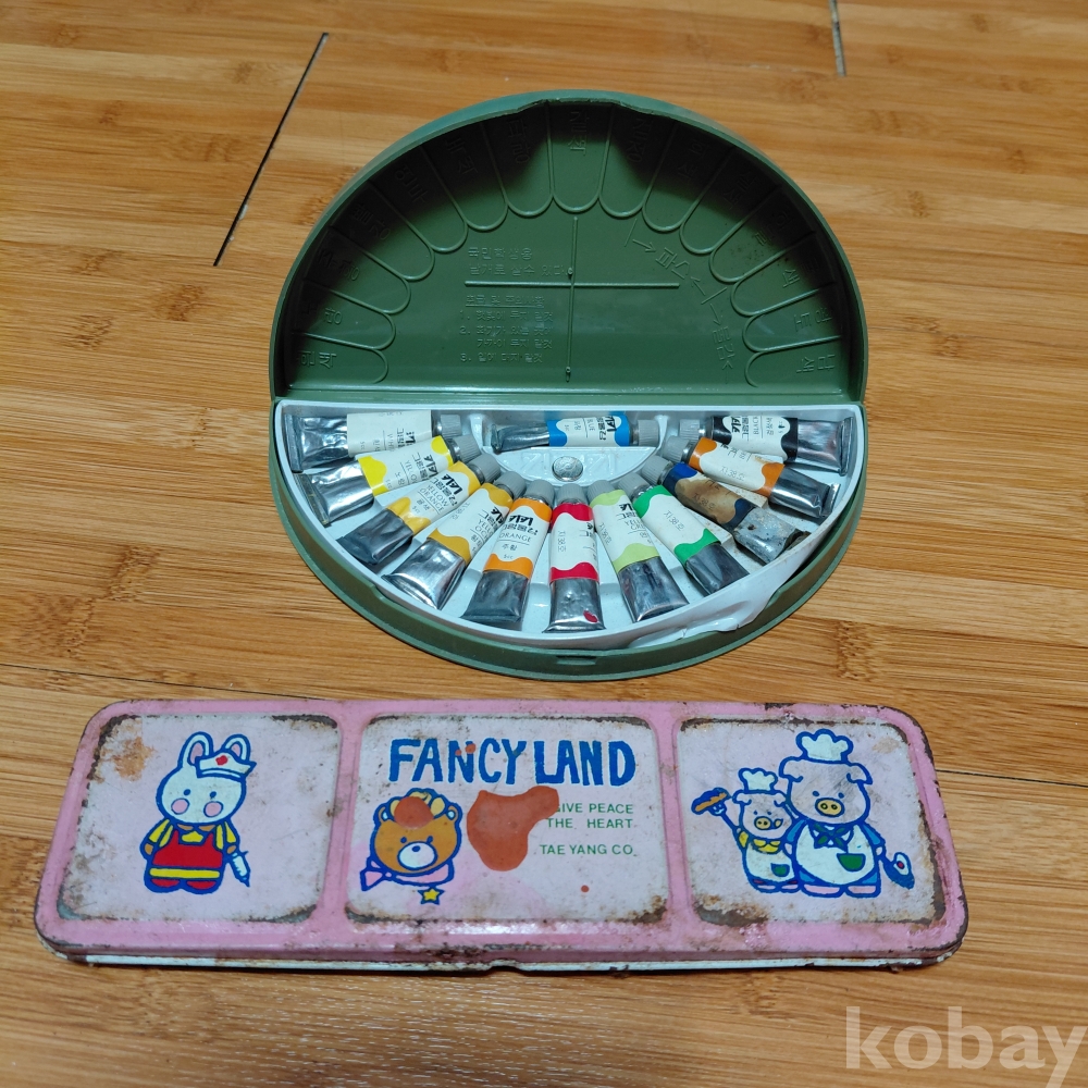 근현대사 양철필통ㆍ키키그림물감 사용제 두점일괄 올려드립니다