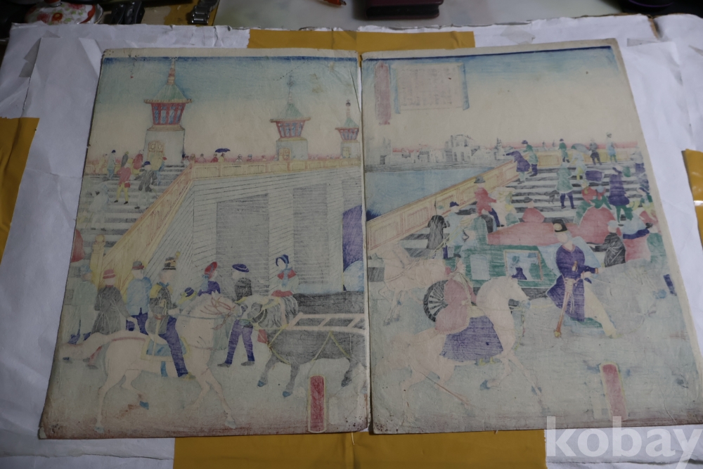 서양인을 주제로 한 귀한 목판화 원본 요시토라의 명작 임니다 19세기 명화 임니다 The artist Utagawa Yoshitora, active between 1850 and 1880