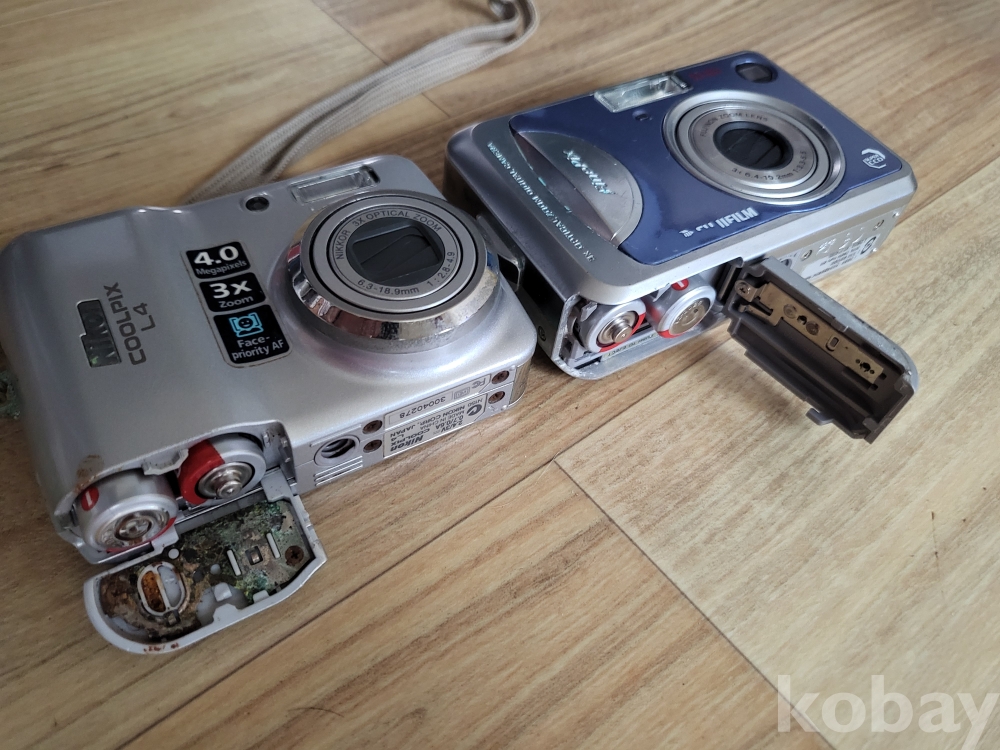 니콘은 배터리 삽입부 벌어짐과 녹이심하고 후지 카메라는 버튼이 먹지 않네요 전시용 부 품용으로 판매합니다