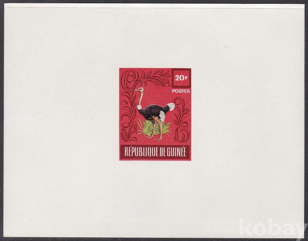 (하늘천) 기니 1962년 20fr, 야생동물, 동물상(動物相), 새, 타조, 미발행 다홍 디럭스 프루프