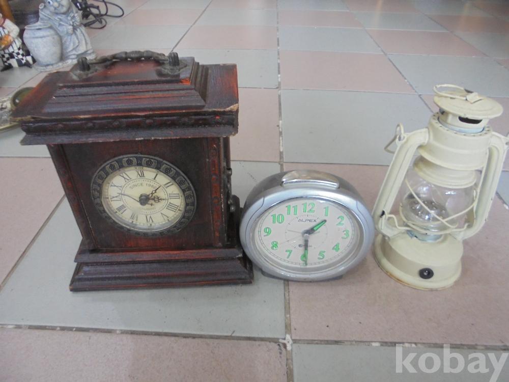근대개조한 전자시계와 일반적인 알페스 알람 야광탁상시계 총3점 옻칠나무시계 가로세로높이 20 x 11 x 23 cm 외 사진참조