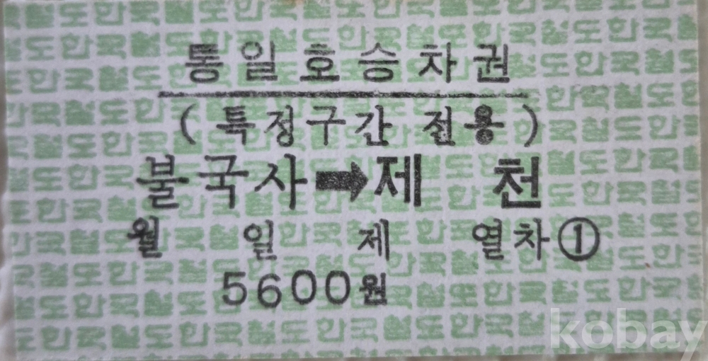 통일호 승차권 불국사-제천 특정구간 일반입니다.