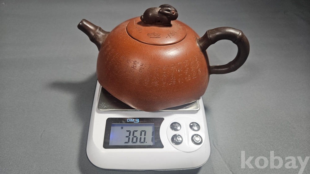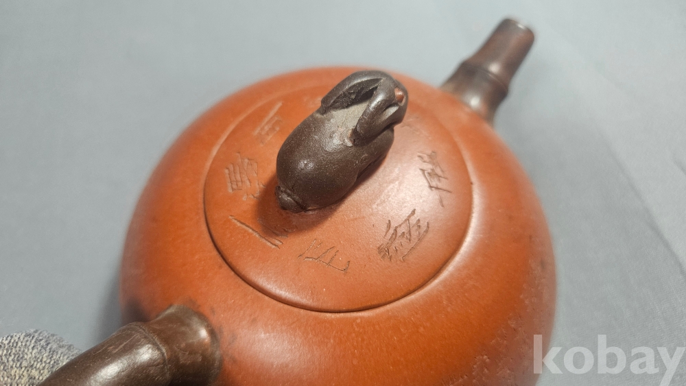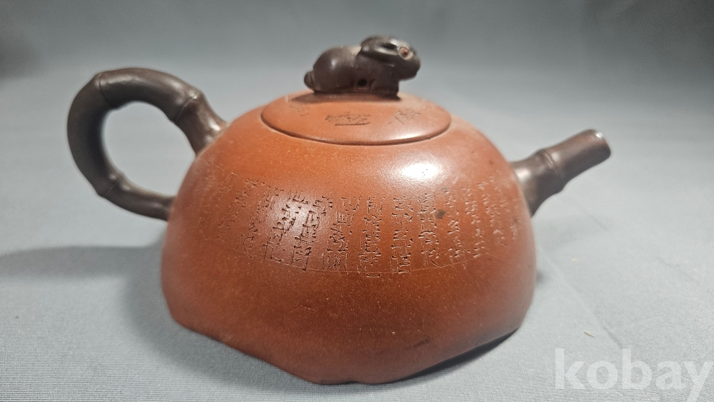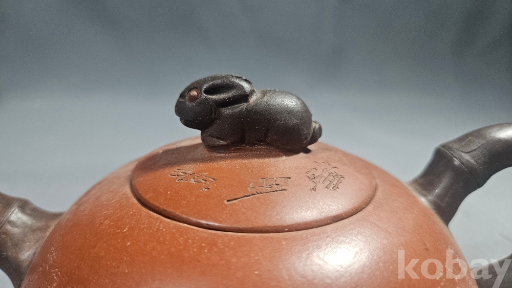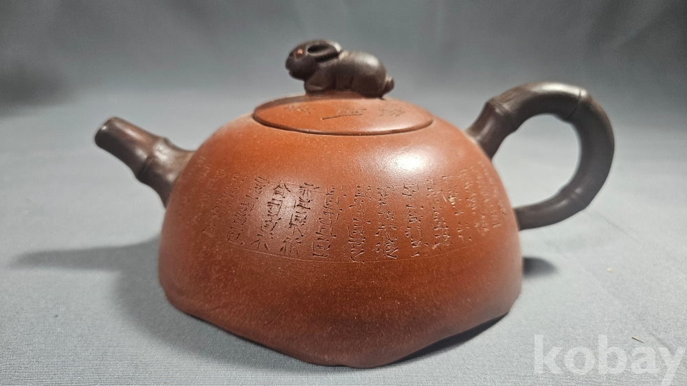 뚜껑에는 토끼가, 몸통에는 음각으로 글자가 촘촘하게 들어있는