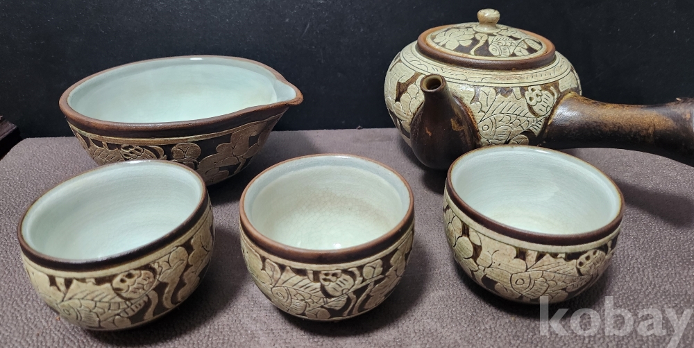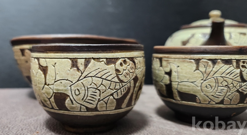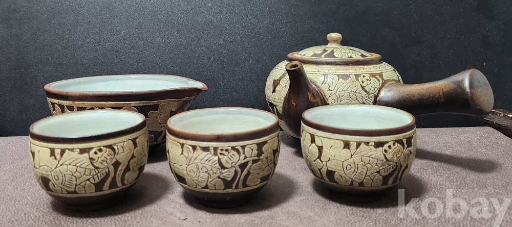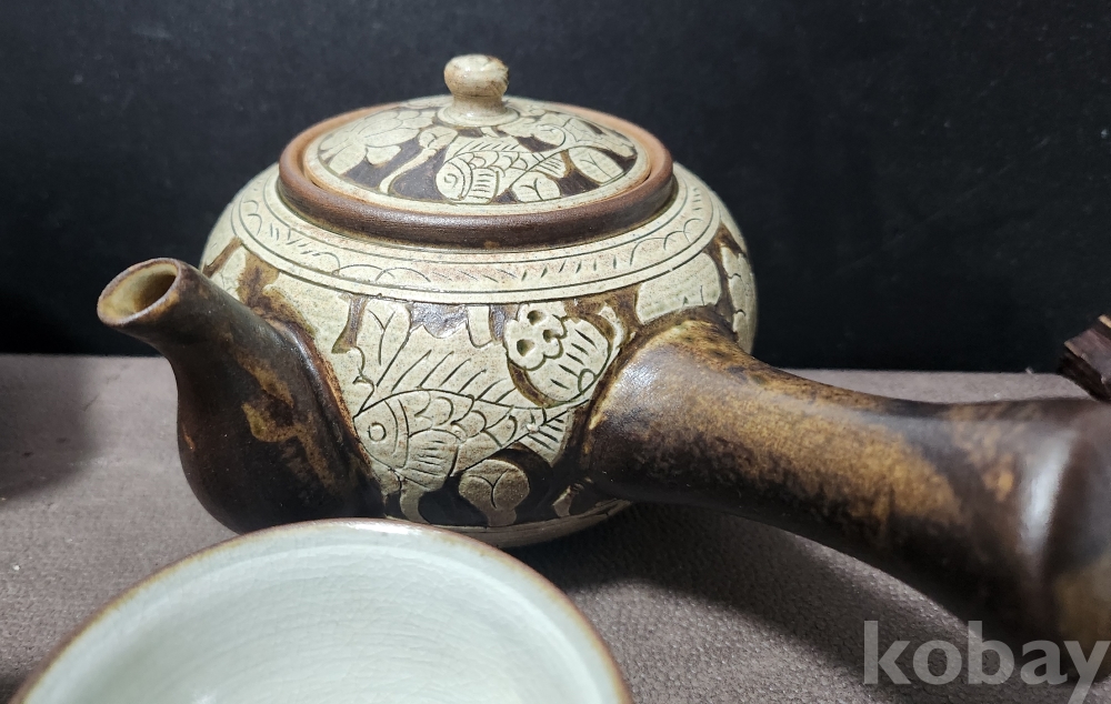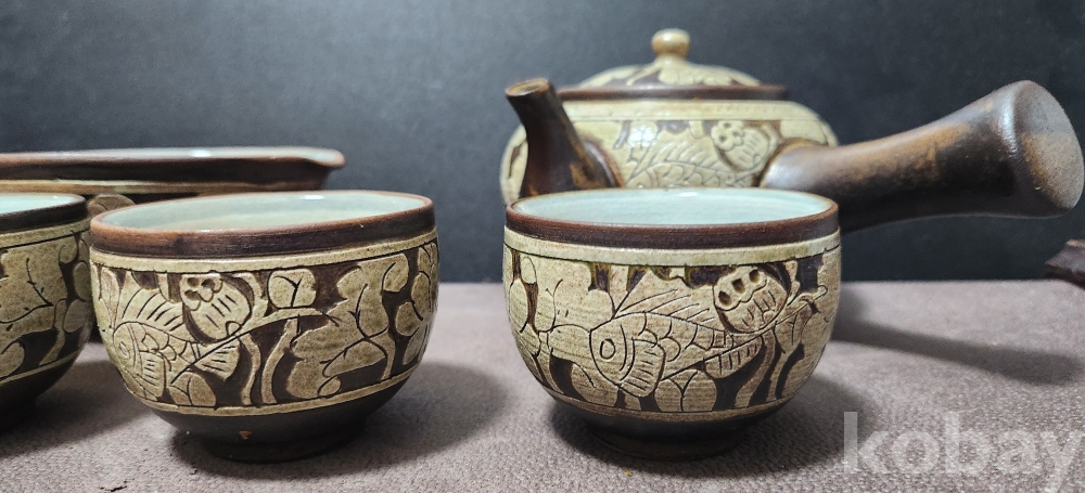 가천요 加川窯 "송기영" 도예가 <분청음각어해문다기 粉靑陰刻魚蟹紋茶器>