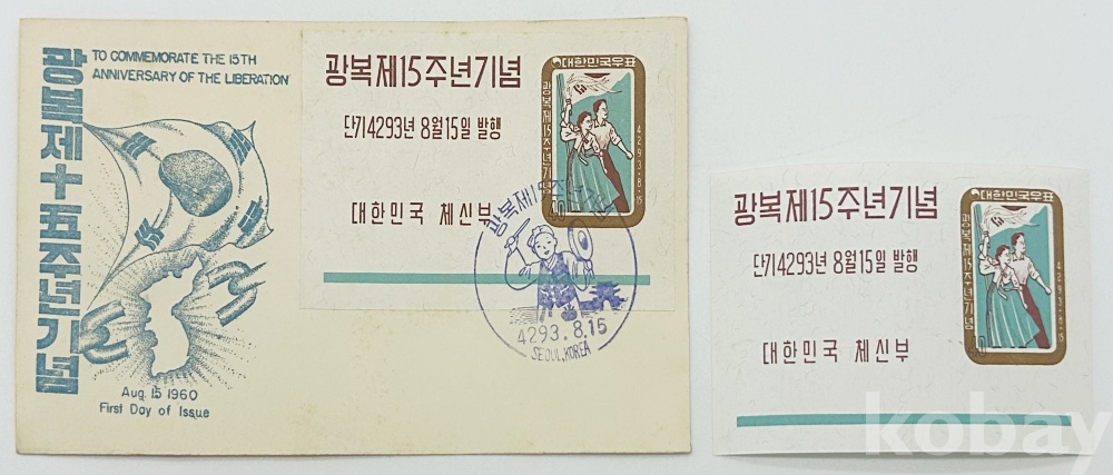 상품명 | 1960년 광복 제15주년 기념 초일봉피와 기념우표 2점 일괄 | ||