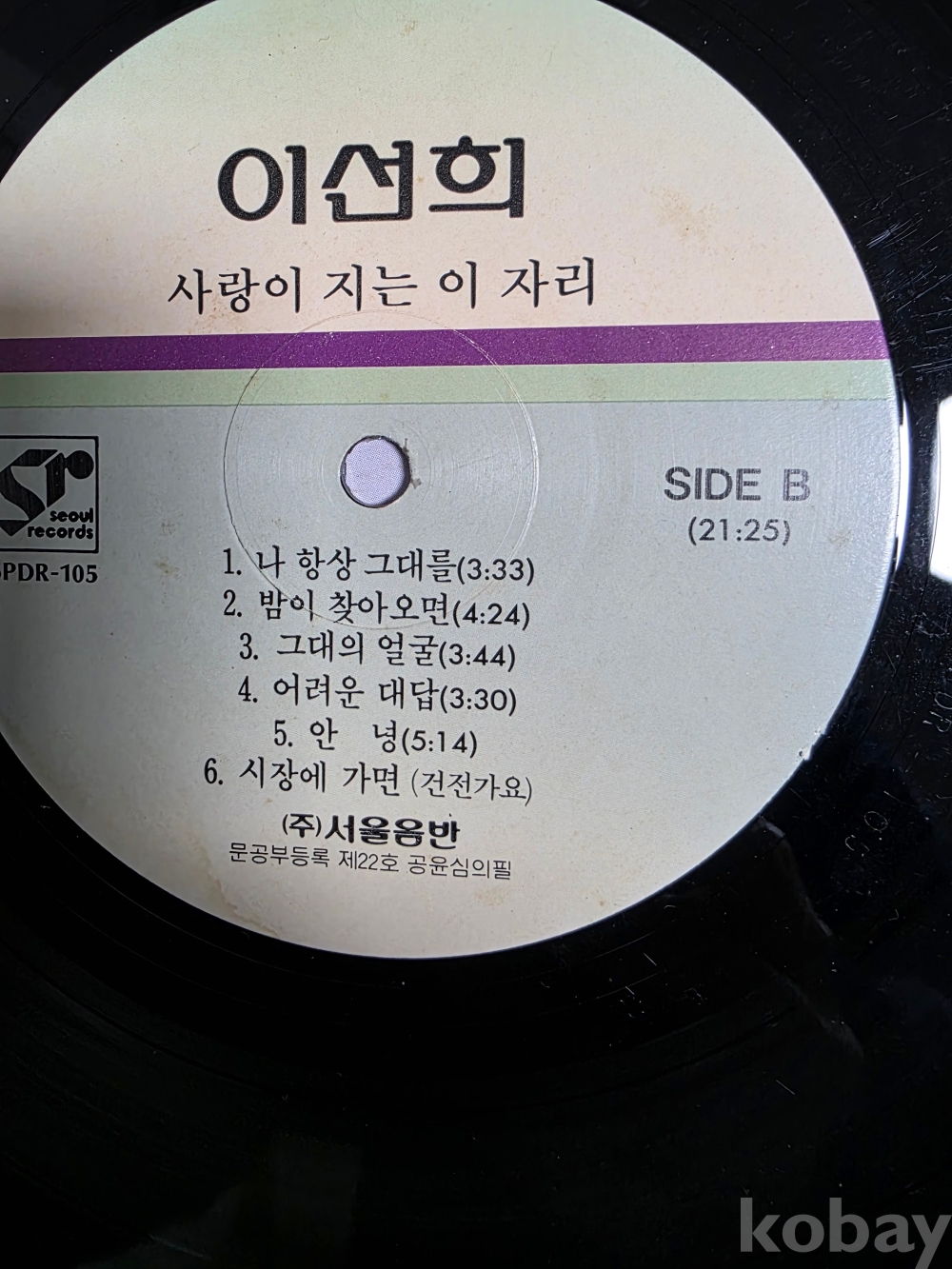 | 자켓상태 | EX : 약간의 마모, 모서리 찢김 존재 | 음반상태 | G : 눈에 띄는 스크래치, 튐 또는 노이즈 발생 | 발매정보 | 알수없음 | 가사지여부 | 유 |