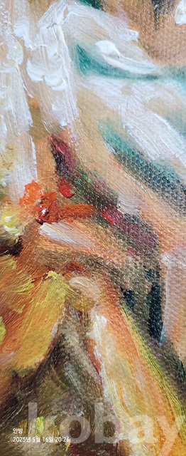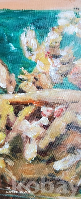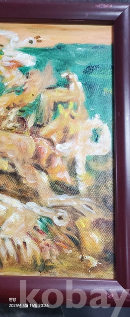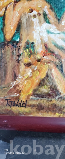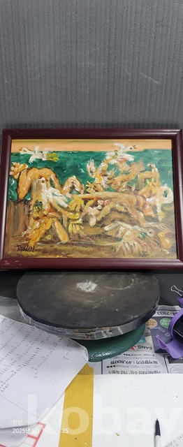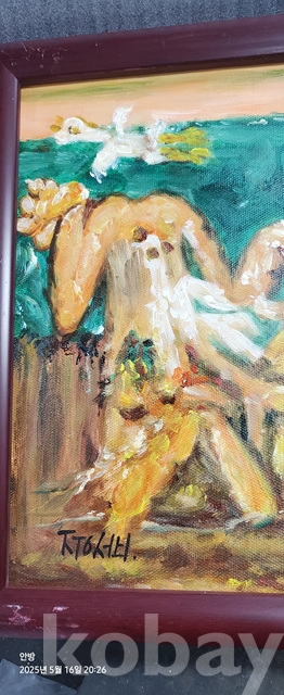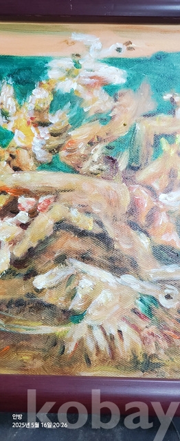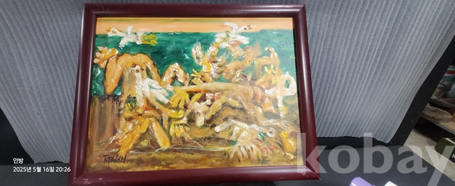 라-102.액자에들어있는 유화로실체그린 입체감있는이중섭의반추(미감정)