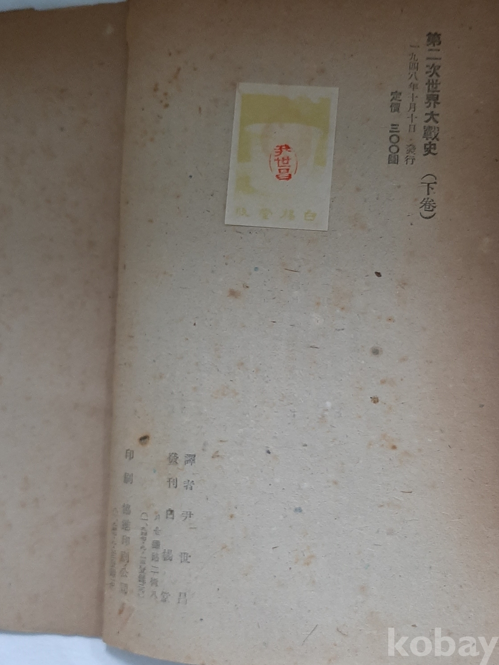 제2차세계대전사 하-윤세창 역 1948년 초판 백양당 발행
