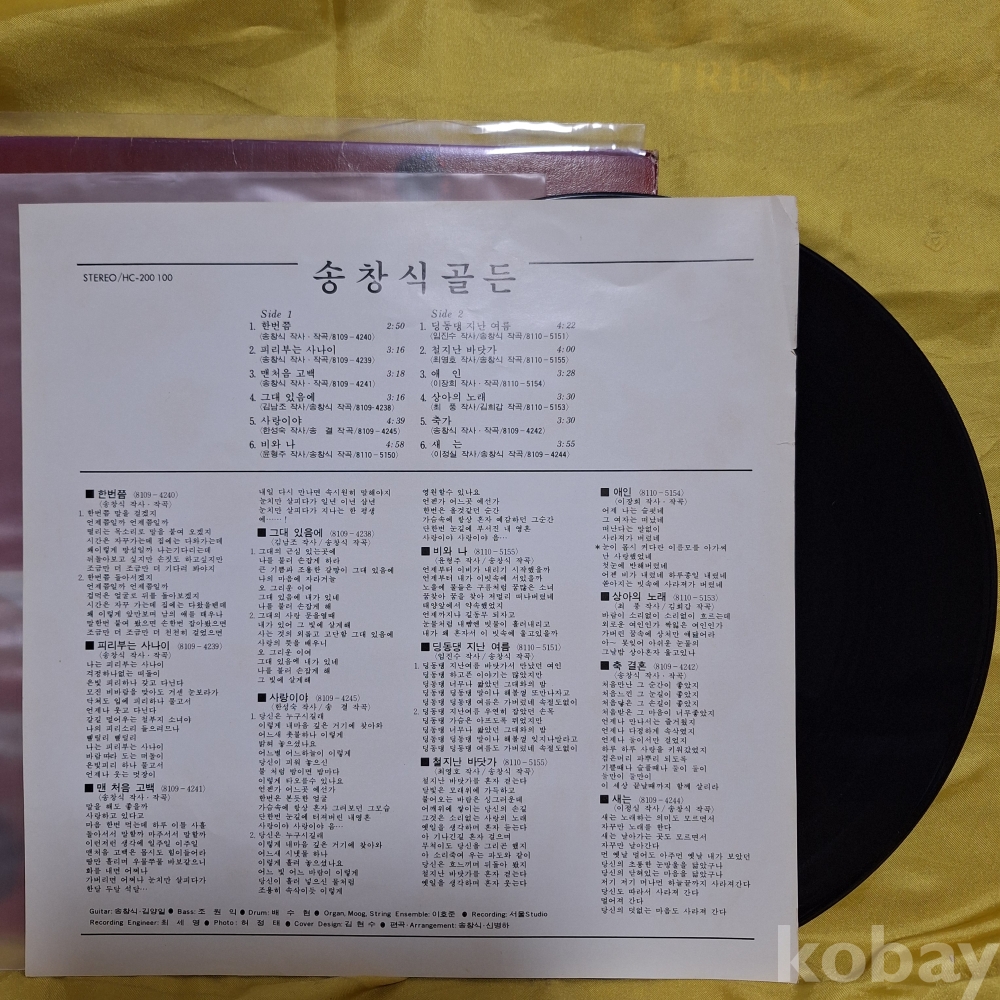 **년도(년식)이 있는 중고 음반이라 작은 팀과, 사진상 엷은 스크릿치는 잘 안보일수 있고