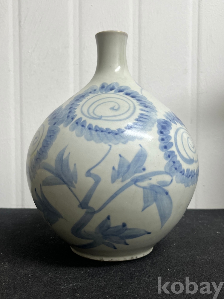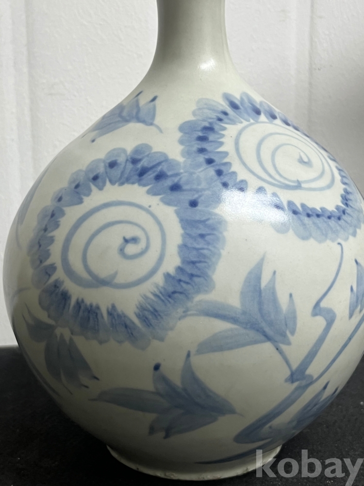 청화로 그려진 화훼문은 농담의 변화를 통해 여백과 어우러져 차분한 운치를 자아냅니다