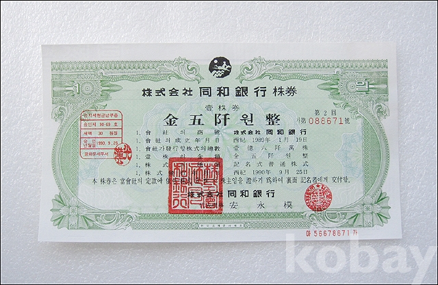 동화은행 5,000원권 실물 종이 주식 (794)
