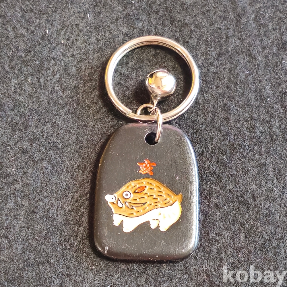 (((키홀더/키링/열쇠고리/가방고리))) 오래전 일본관광기념 방울달린 멧돼지 금속 키홀더