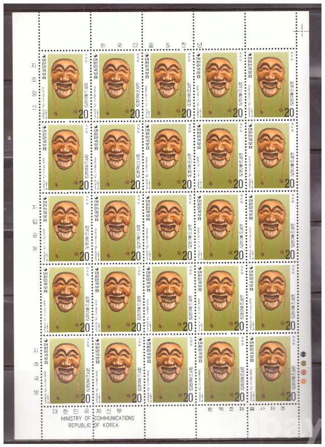 (한국전지) 1979.11.15 한국미술 5천년-하회탈 sheet of 25 MNH
