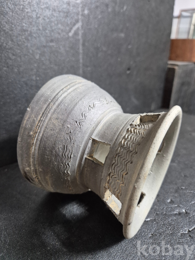 신라토기 굽다리 잔으로 보이는 기물입니다.
