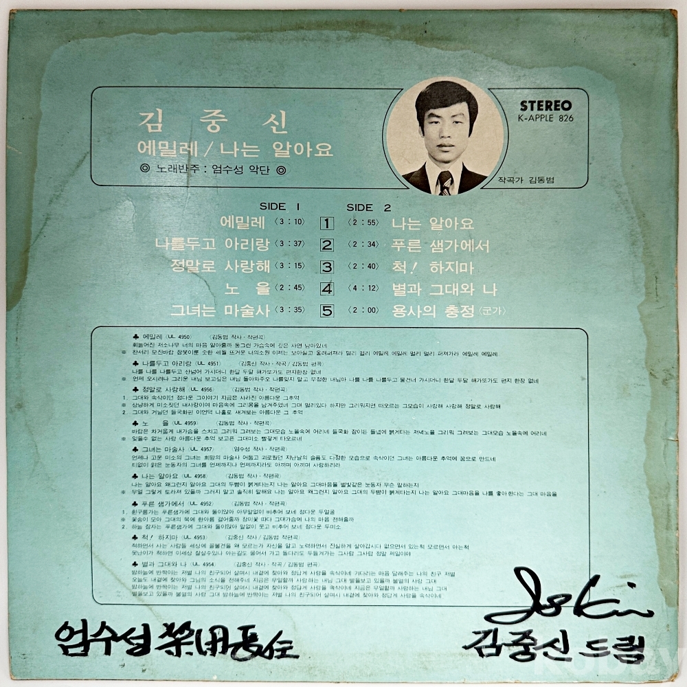상품명 | (김중신 사인반) 김중신 [ 에밀레 / 나는 알아요 ] | ||